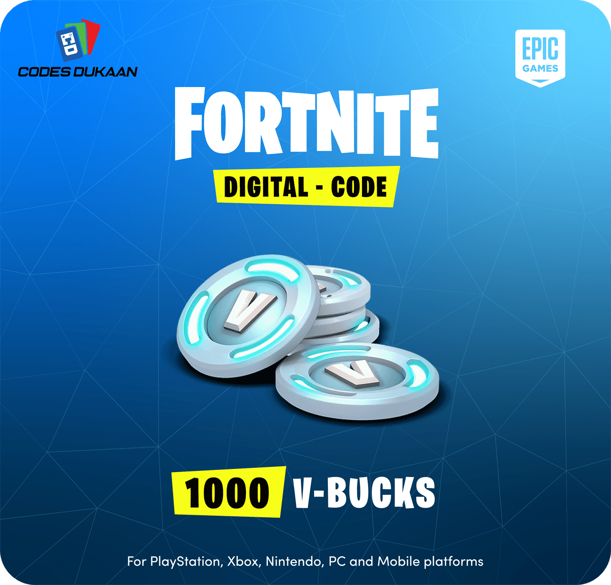 Buy Fortnite V-Bucks Card at Codes Dukaan now to enhance your gaming experience now!